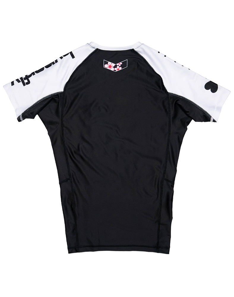Unleash your playful side while staying battle-ready in the tokidoki x Hyperfly Skull Short Sleeve Rash Guard. Featuring the iconic tokidoki double skull logo surrounded by delicate cherry blossom flowers, this rash guard blends bold design with a touch of elegance. The classic Hyperfly and tokidoki logos on the shoulders add a sleek, athletic touch.