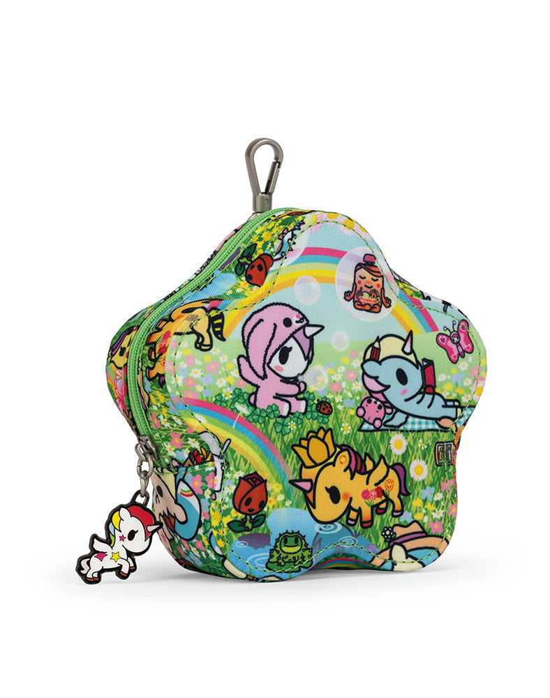 Small but mighty flower-shaped pouch that fits more than you think! The zipper closure opens and closes over the flower’s to three petals, and the sturdy swivel hook securely attaches to a D-ring or thin strap on your favorite tokidoki x JuJube bags! It’s a perfectly petite bag for keys, chapstick, hand sanitizer or other tiny treasures!